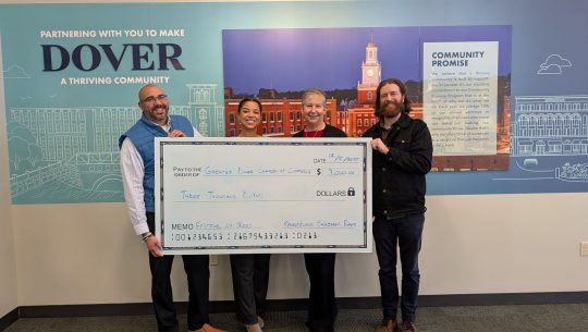 Photo caption: From left to right are Kennebunk Savings Vice President and Retail Experience Manager Carlos Maldonado, Kennebunk Savings Assistant Vice President and Market Manager Dory Polanco-Arias, Greater Dover Chamber of Commerce President Margaret Joyce, and Greater Dover Chamber of Commerce Community Events Manager Jed Allen.