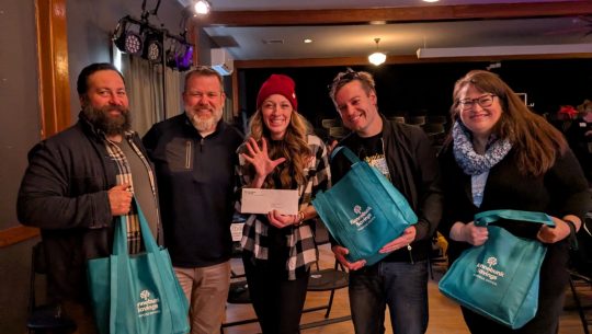The Kennebunk Savings holiday campaign has included several surprise gifts. When Torrance and the Bank’s Chief Lending Officer Aaron Awbrey visited Mainspring in Kittery, home of Footprints Food Pantry, for a routine meeting, they also brought along 200 pounds of groceries and a $10,000 check. Then, at a recent community event hosted by Creative Mornings, Torrance, along with Than Meyer, a Senior Commercial Lines Agent with Kennebunk Savings Insurance, and Zac Little, the Bank’s Marketing Content Manager, brought the team from Red’s Good Vibes $5,000 toward their community fridge initiative. “It’s a fun way of demonstrating to our community that we have their backs – we’re here for you even if you’re not asking for our help,” Torrance said.